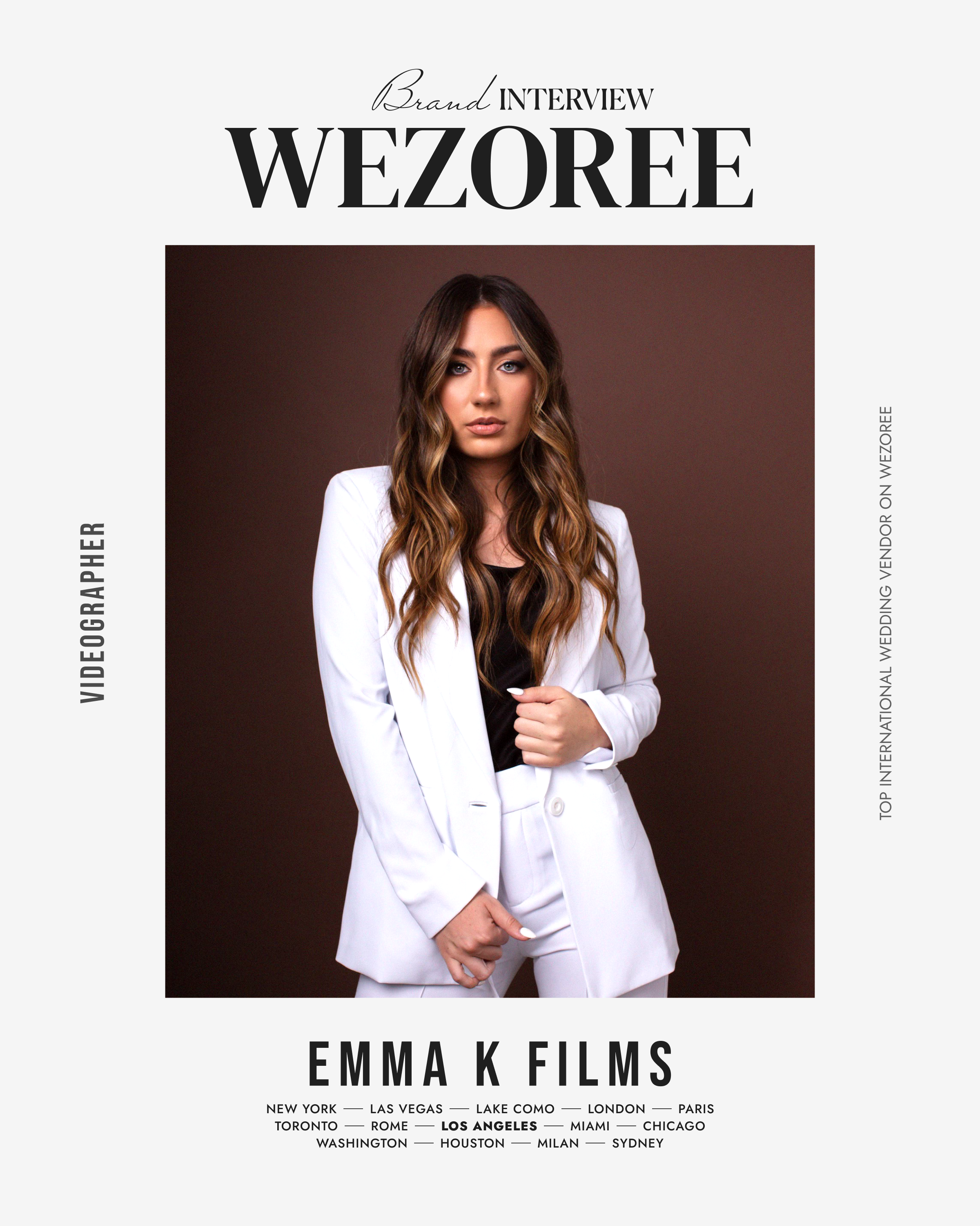 Emma is a LA based filmmaker who specializes in documenting luxury weddings and events world wide. She has had the honor of filming over 100 exclusive stories to date and has been featured in world renowned publications such as People, Brides, ESPN, Green Wedding Shoes, The Wed, and more. Emma has a deep passion for not only crafting films that capture your truest emotion and most powerful moments, but also for creating a keepsake that will feel like your own personal piece of artwork, taking you back to your favorite memories for years to come. Outside of filming weddings, Emma loves to travel, shop, and work on the education branch of her business. The energy she brings to a day is unmatched and the way she connects with, and also respects her clients is what sets her apart.