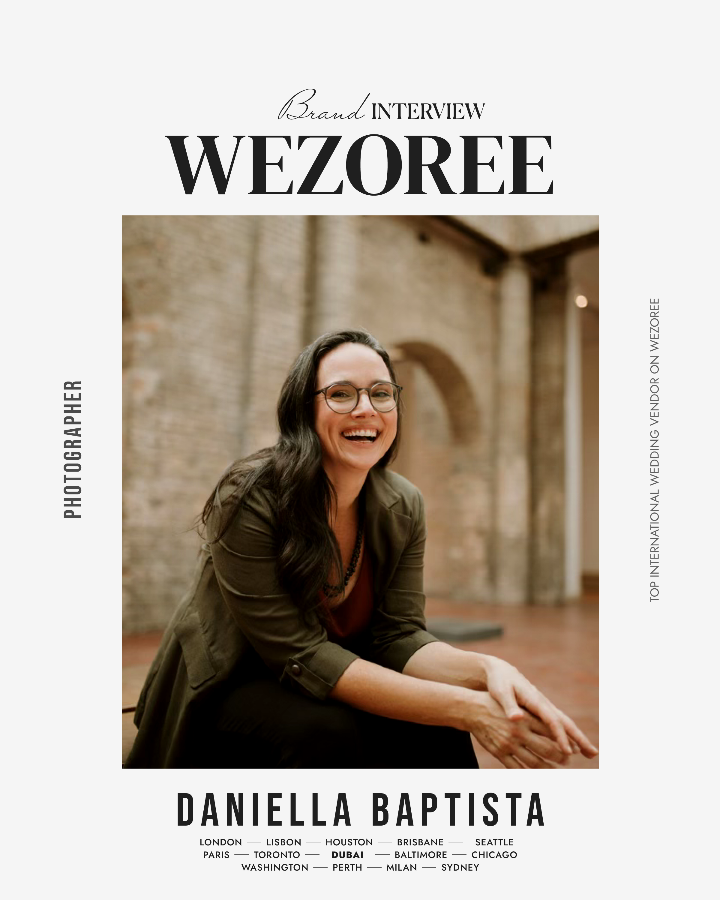 Daniella has spent the last 15 years perfecting her unique, authentic and timeless approach to photography and videography. Her highly personal visual interpretation of emotion within a world of luxury is reserved for a sel ect number of clients every year. With over a decade of established experience in the Middle East, Daniella is renowned for capturing both organic and carefully curated moments that are breathtaking and timeless. She’s supported by a skilled all-female team who uncover the emotion in every moment, with each team member handpicked for her experience and discretion. Fr om the initial meeting to the big day, collaboration ensures you get the results you want.