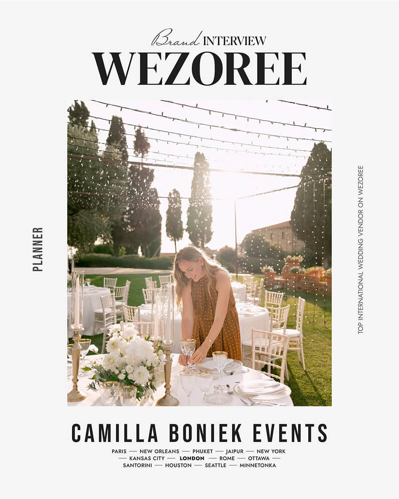 Camilla Boniek Events, a London and Florence-based wedding planner, is the epitome of grace and expertise in orchestrating nuptial celebrations. Notably honored with four Wezoree Awards, they stand as a testament to their exceptional service and client satisfaction.