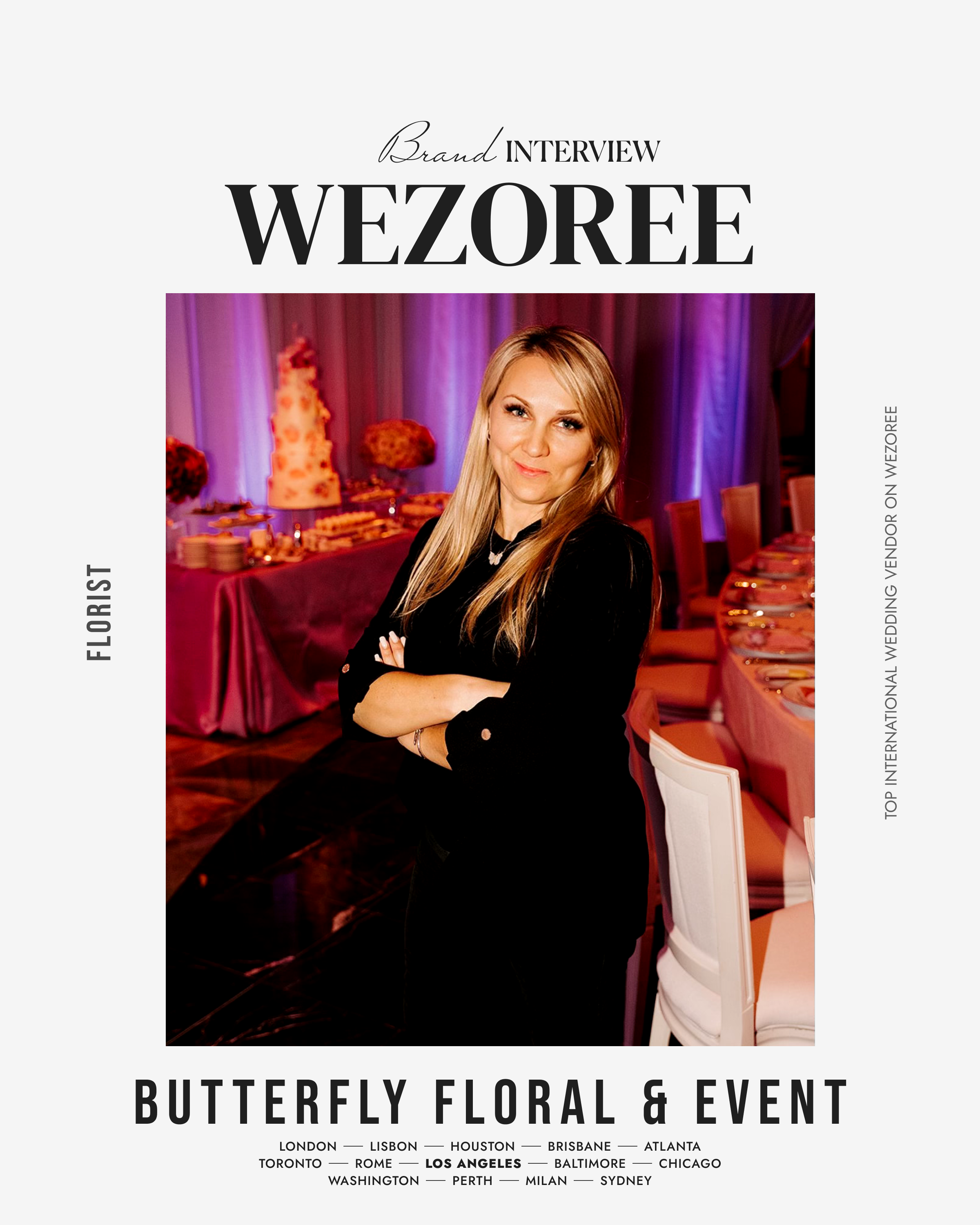 Butterfly Floral & Event Design is renowned as a treasure in the heart of Los Angeles for couples dreaming of an enchanting wedding. As a recipient of four prestigious Wezoree Awards, their reputation for excellence in the floristry realm is well-established.
