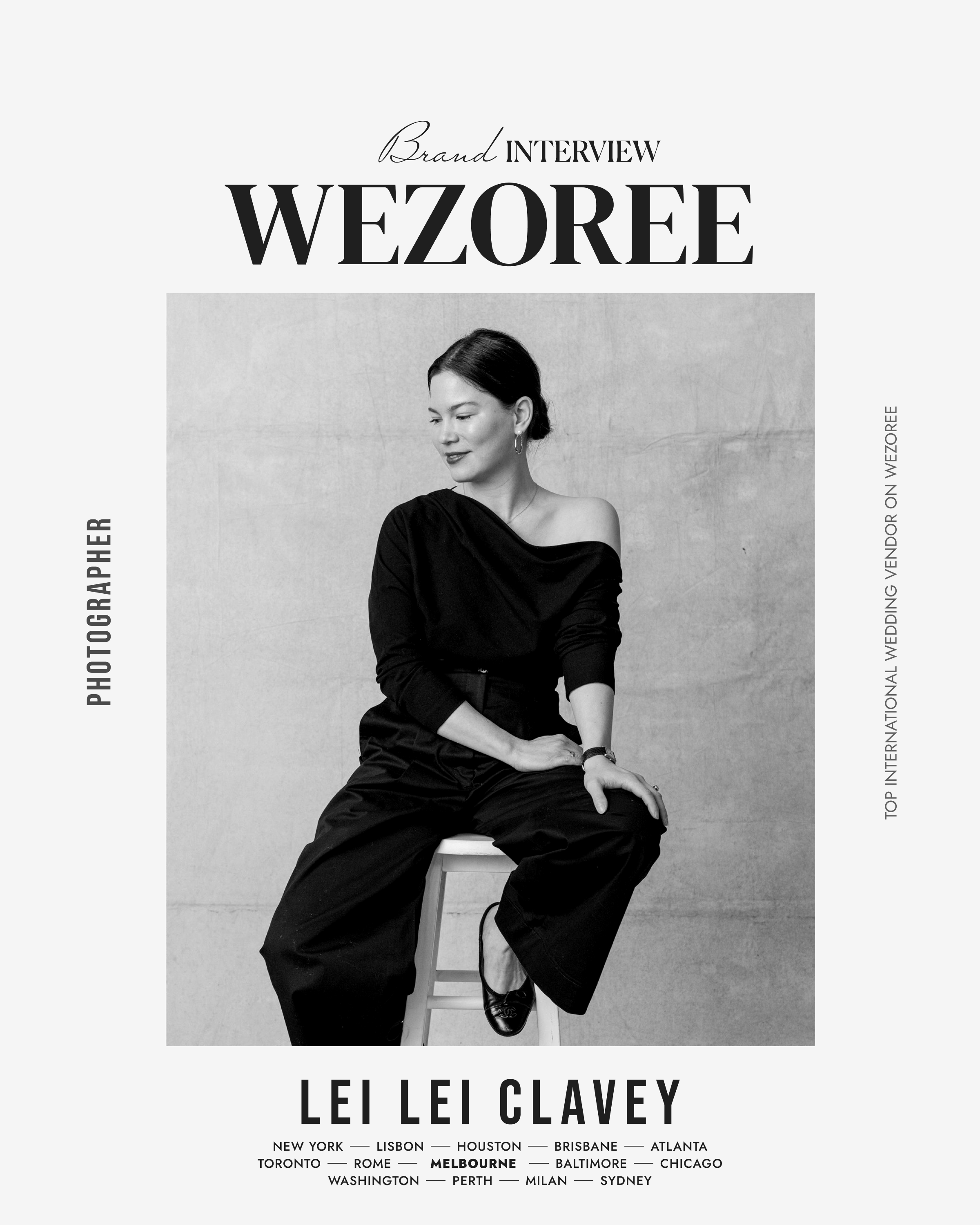 Perpetual optimist, Martini/Negroni lover (it’s a tie), and mother to two little boys and two fur babies. Shoes (Chanel and Valentinos in particular) are my weakness. NEW YORK CITY I first picked up a camera when I was living in New York City in my twenties. The use of light, composition, and styling an image had me captivated. Since then, I have been honing my skills in fashion editorial photography. WEDDING PHOTOGRAPHY In 2020 I was drawn to wedding photography and instantly fell in love! Capturing the romance of life, the joy, anticipation, nerves and excitement of such an incredible day in one’s life is something I hold very dear. I adore bringing my fashion editorial photography background to my couples and creating timeless wedding photographs they can cherish for eternity. My work has been published in Australian VOGUE, British Vogue, The Anti-Bride, The Lane, The Wed, Together Journal, Hello May and Ivory Tribe to name a few.
